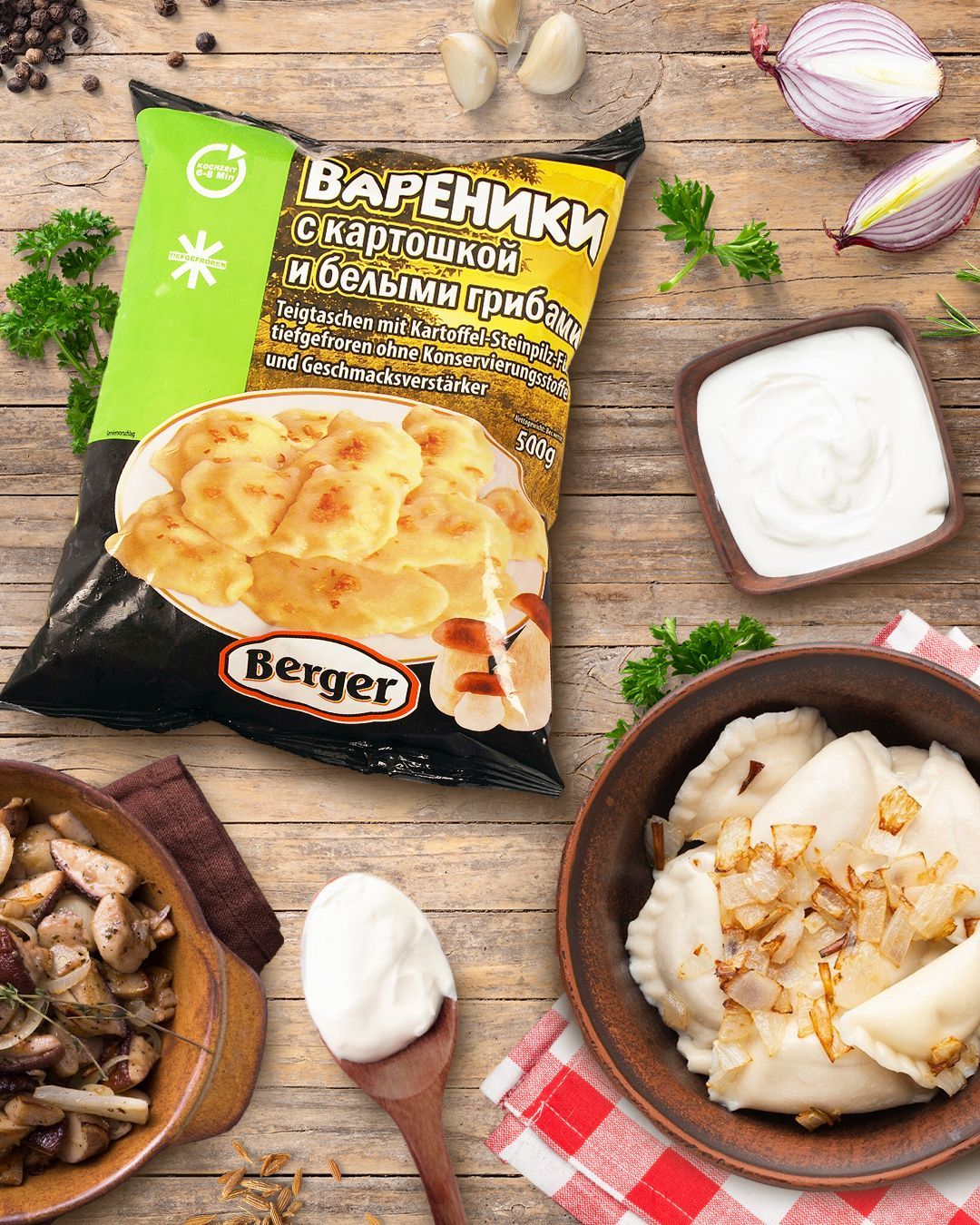 Im Mini-Markt finden Sie über 20 Arten von Pelmeni und Wareniki in verschiedenen Geschmacksrichtungen und Preisklassen. Probieren Sie die rumänischen, polnischen, türkischen tiefgefrorenen Fertiggerichte: Piroggen, Samsa, Cevapcici und vieles mehr. Bitte denken Sie daran, dass Teig- und Fleischgerichte einfach besser schmecken, wenn Sie diese mit Sauerrahm, Mayonnaise, Senf, Tomaten- und Gemüsesoßen bzw. mit Butter servieren!